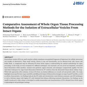 A new study demonstrates how the TissueGrinder enables rapid, enzyme-free organ dissociation for extracellular vesicle research. The study shows that the TissueGrinder-based processing preserves EV characteristics with reduced cell activation, offering a fast and reproducible alternative for EV isolation across organs.