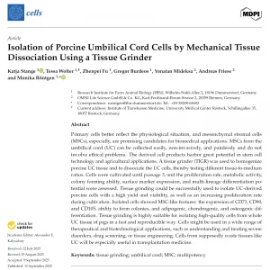 A recent study published in Cells highlights the TissueGrinder as an effective tool for isolating umbilical cord-derived MSCs, displaying strong proliferation capacity, multipotent differentiation potential, and typical marker expression, underlining their suitability for applications ranging from regenerative medicine to cellular agriculture.
