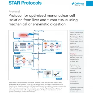 A new publication in STAR Protocols introduces a standardized workflow for isolating mononuclear cells from human liver and tumor tissue and directly compares mechanical TissueGrinder-based dissociation with conventional enzymatic digestion. It demonstrates that enzyme-free mechanical processing enables rapid generation of viable immune cell suspensions while reducing processing time and costs. The workflow supports translational immunology, flow cytometry, and single-cell applications in solid tissue research.